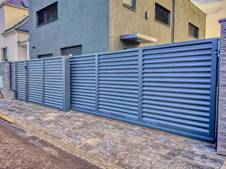 Garážová vrata a pohony > Fotogalerie > Celohliníkové oplocení s bránou, žaluziové provedení.jpg