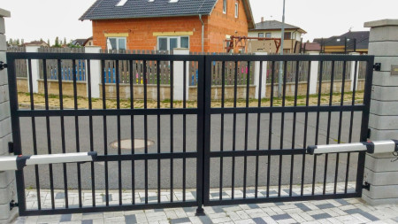 Garážová vrata a pohony > Fotogalerie > Dvoukřídlá brána se svislými příčkami,lakovaná,pohony BFT Phobos.jpg