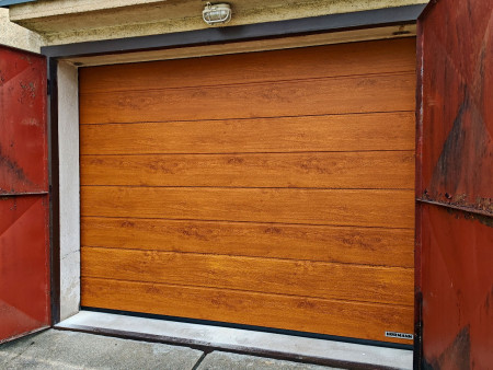 Garážová vrata a pohony > Fotogalerie > Garážová vrata, S drážka, zlatý dub (5).jpg
