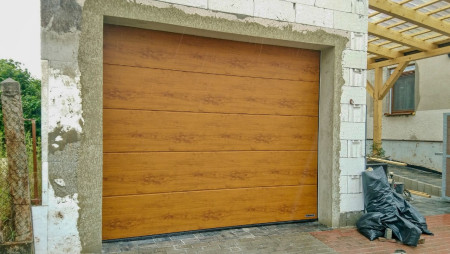 Garážová vrata a pohony > Fotogalerie > Garážová vrata sekční, L drážka, zlatý dub (7).jpg