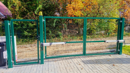 Garážová vrata a pohony > Fotogalerie > Křídlová brána lakovaná, výplň systémové pletivo s pohony BFT Phobos.jpg