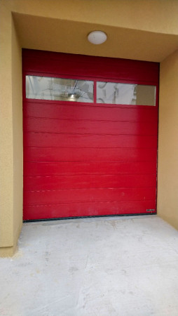 Garážová vrata a pohony > Fotogalerie > Průmyslová vrata s prosklenou lamelou - červená.jpg