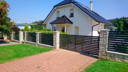 Garážová vrata a pohony > Fotogalerie > Samonosná brána a plotové dílce, celohliník, lamely, antracit.jpg