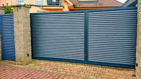 Garážová vrata a pohony > Fotogalerie > Samonosná brána, branka, celohliník, antracit.jpg