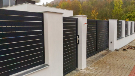 Garážová vrata a pohony > Fotogalerie > Samonosná brána, branka, plotové dílce, lamely, celohliník.jpg