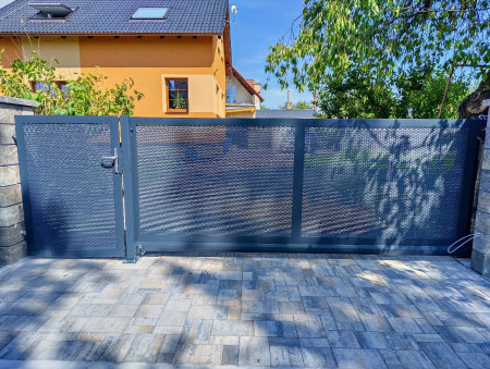 Garážová vrata a pohony > Fotogalerie > Samonosná brána, branka, výplň Tahokov, antracit.jpg