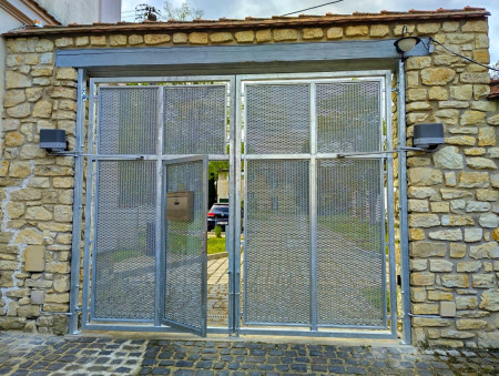 Garážová vrata a pohony > Fotogalerie > Vjezdová ocelová brána s tahokovem, pozink, pohony Somfy Axovia.jpg